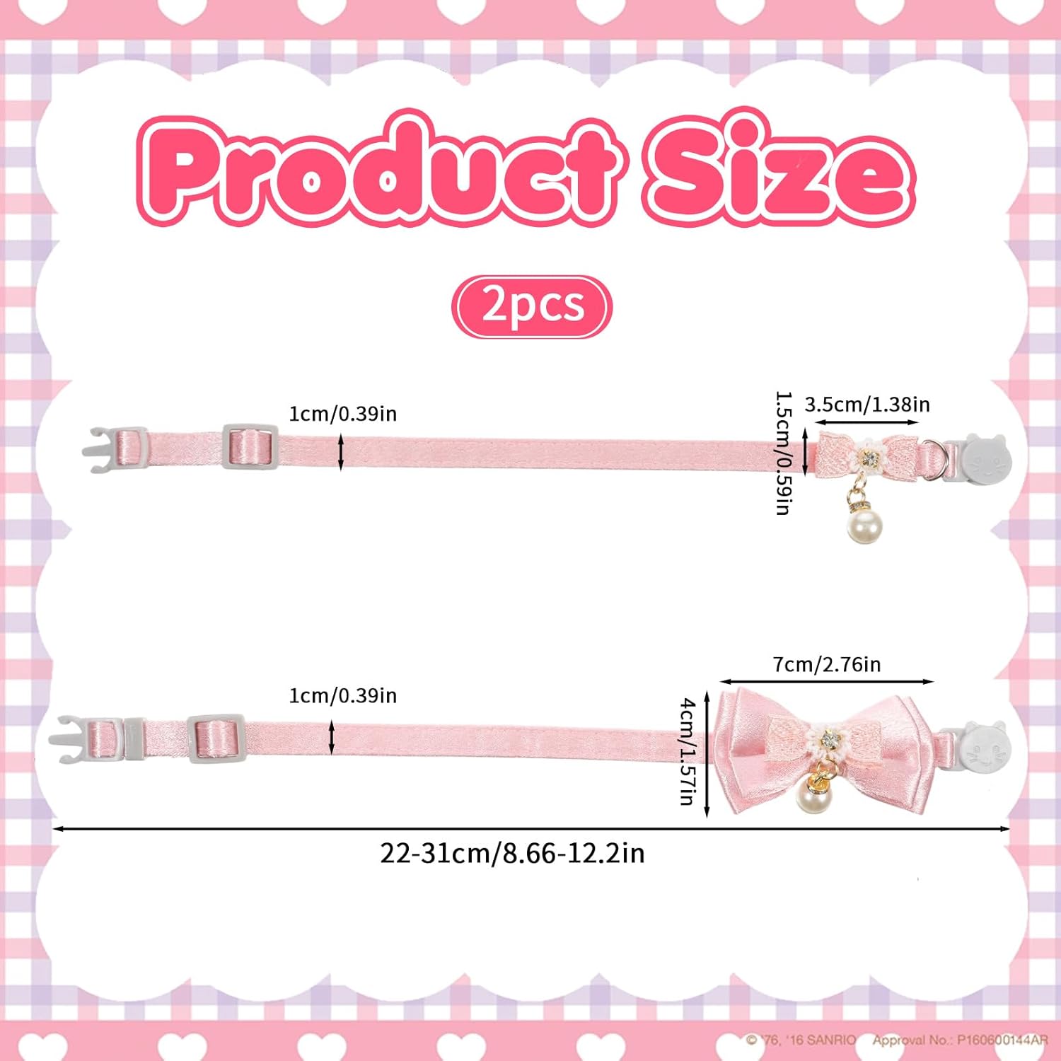 Product Name: 2-piece Pink Bow Cat Collar