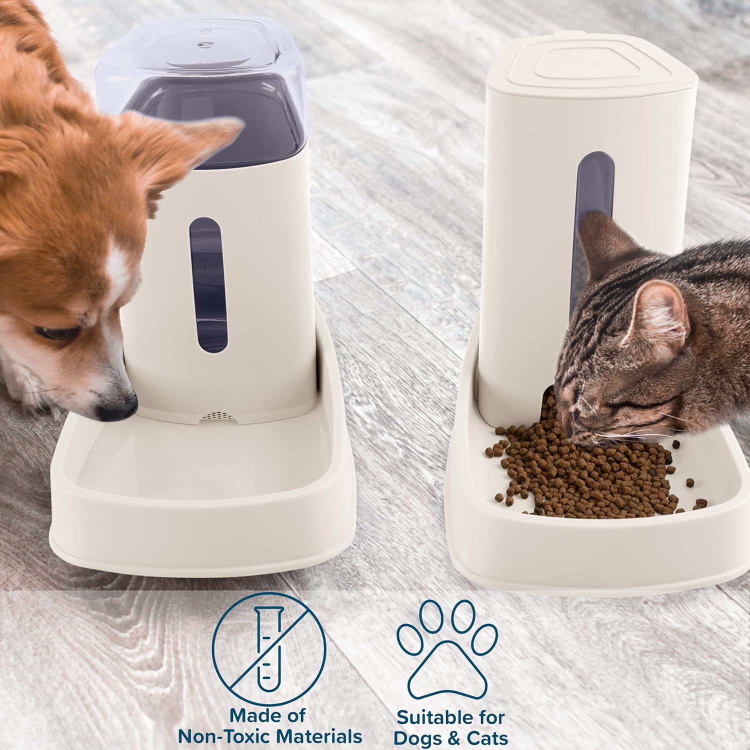 Automatic Cat Feeder and Water Dispenser – 2-Pack 3.8L/1G Pet Bowls – Gravity Automatic Cat and Dog Feeding Station – Pet Supplies by PETMAKER (White)