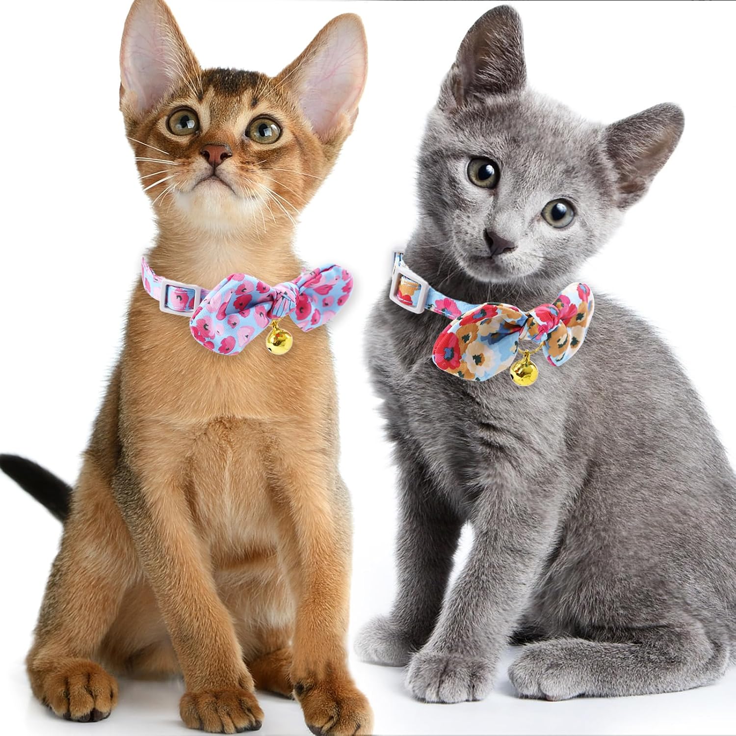 Stylish Design: Adorable bow ties and floral prints add a touch of whimsy to these cat collars.