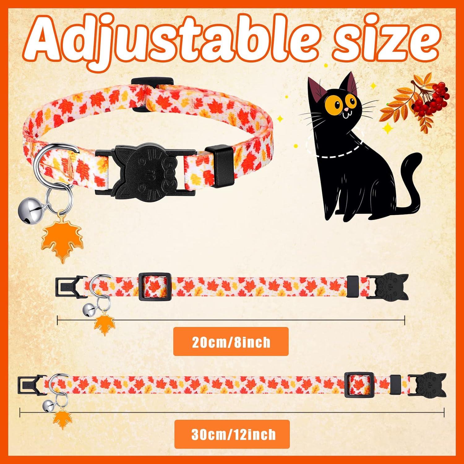 Adjustable Size: the kitten autumn collar features adjustable length, ranging from 8 inches to 12 inches, and about 3/8 inch in width, and it is designed with buckles for you to adjust, suitable for most cats; Please measure your pet’s neck circumference before ordering, and keep 2 fingers between the pet’s neck and the collar
