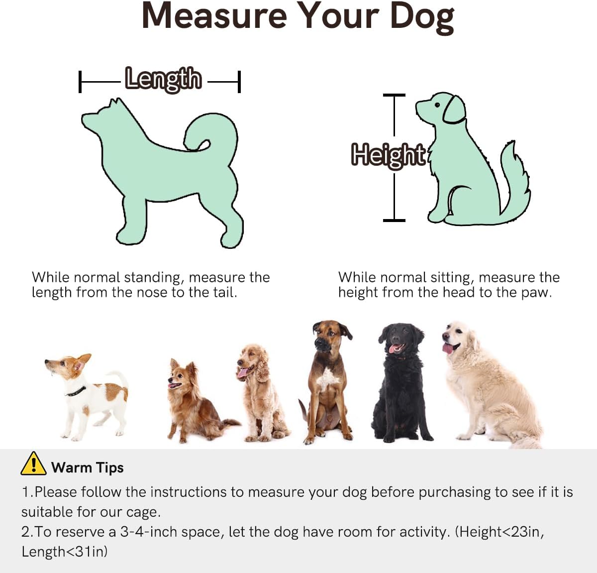 【Choose the Right Size】The internal dimensions of the wooden dog crate furniture are 34.6″Lx21.6″Wx26.4″H, perfect for small to medium dogs (weight: under 70 lbs; L: <31"; H: <23"), such as Border Collies, Shiba Inus, Bulldogs, and so on. Please measure your dog's size before purchase to make sure it fits your dog. Any question please let us know any time.